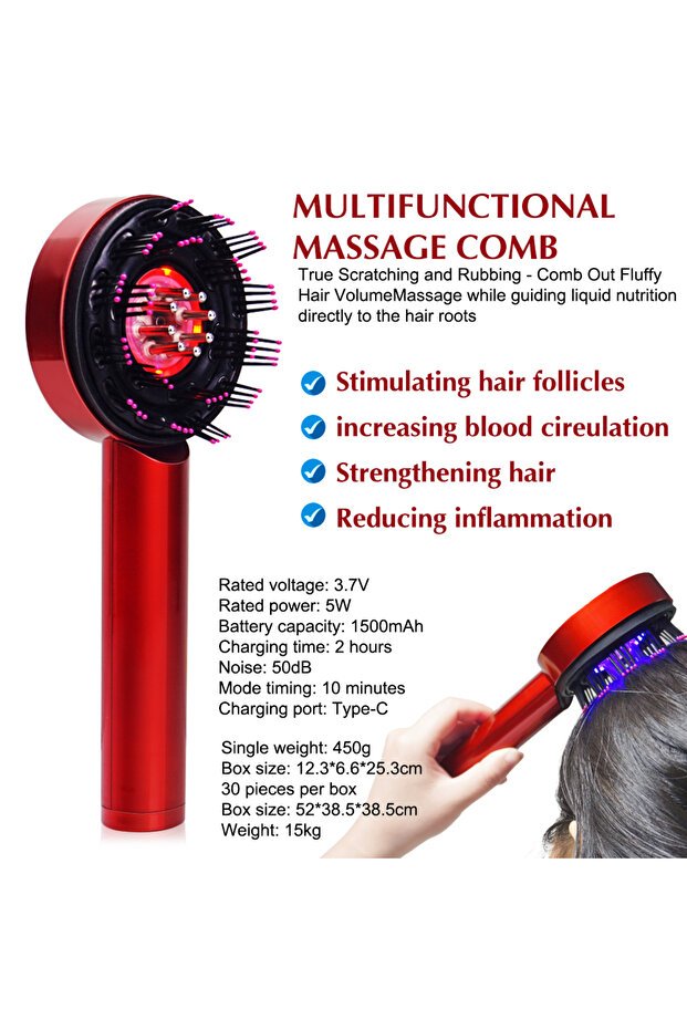 – Elektrikli Saç Masaj Tarak, Saç Derisi Bakımı Kırmızı Işık Önleme Saç Büyüme Tarağı.