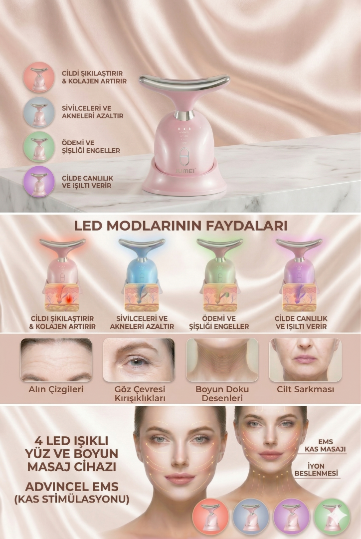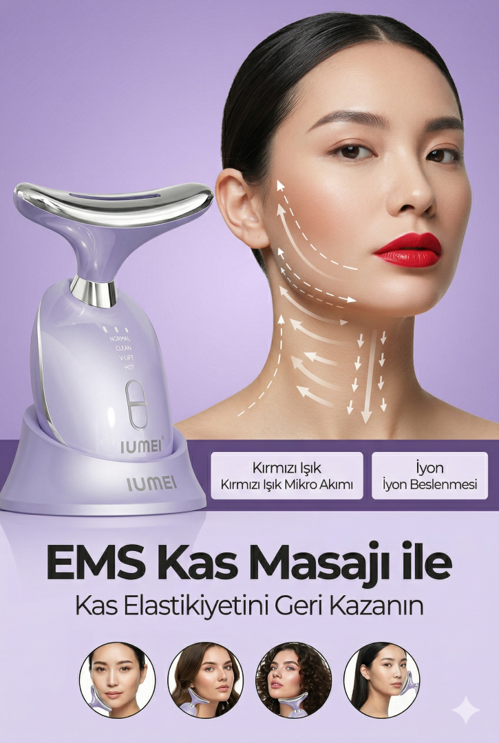 IUMEI EMS Yüz Boyun Cihazı 7 LED Işıklı Gıdık Toparlayıcı Anti Aging Lift – Mor