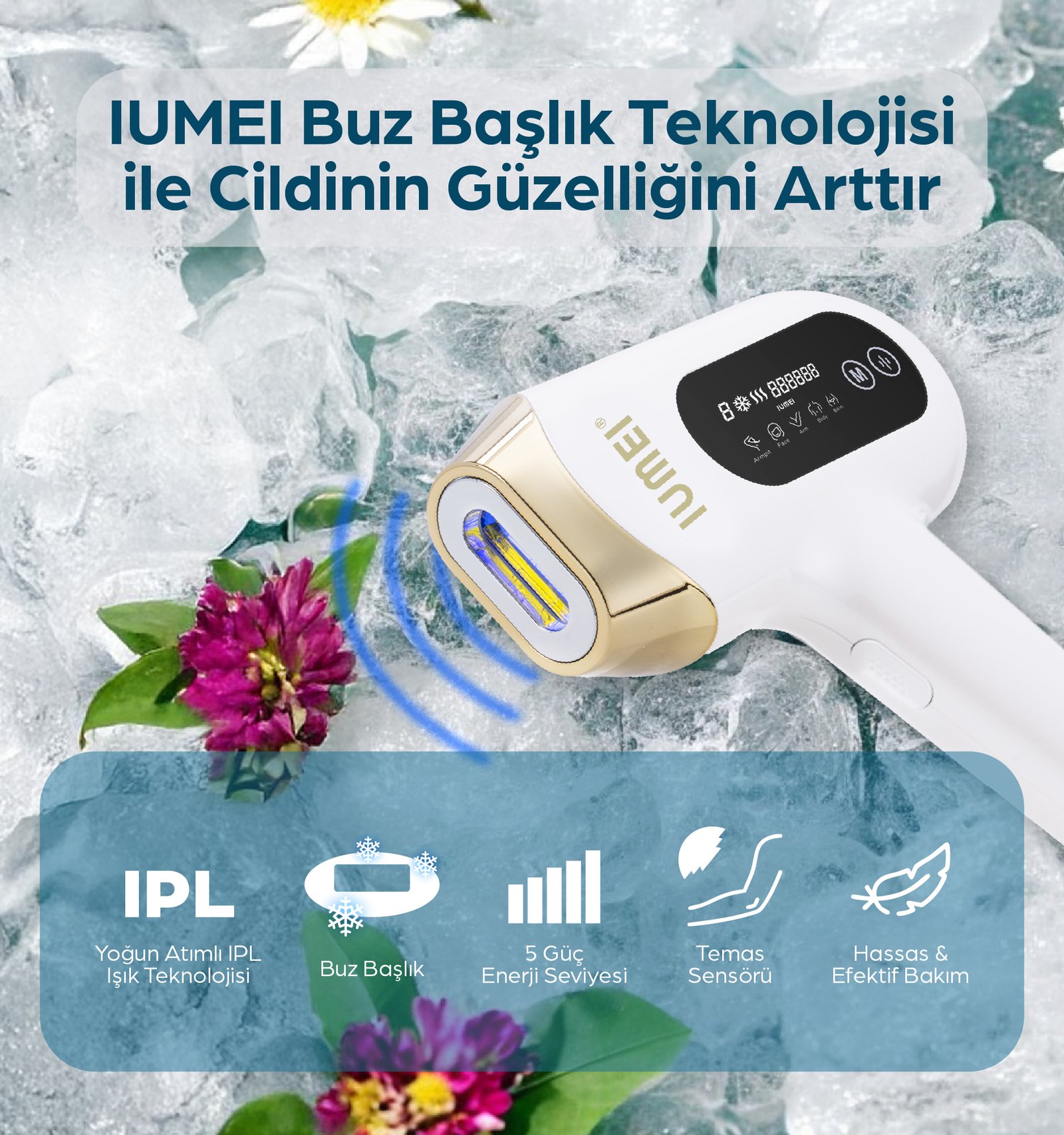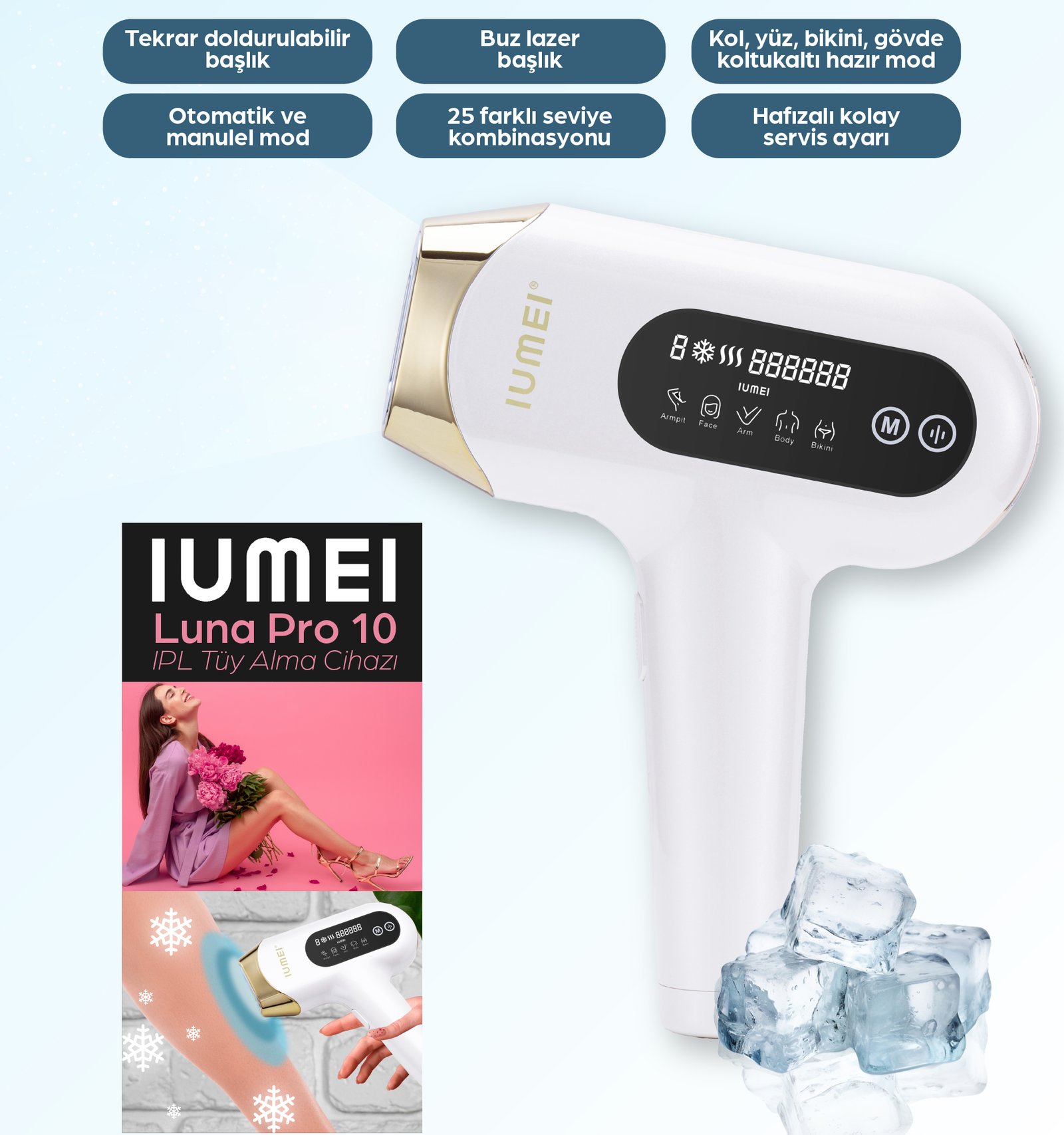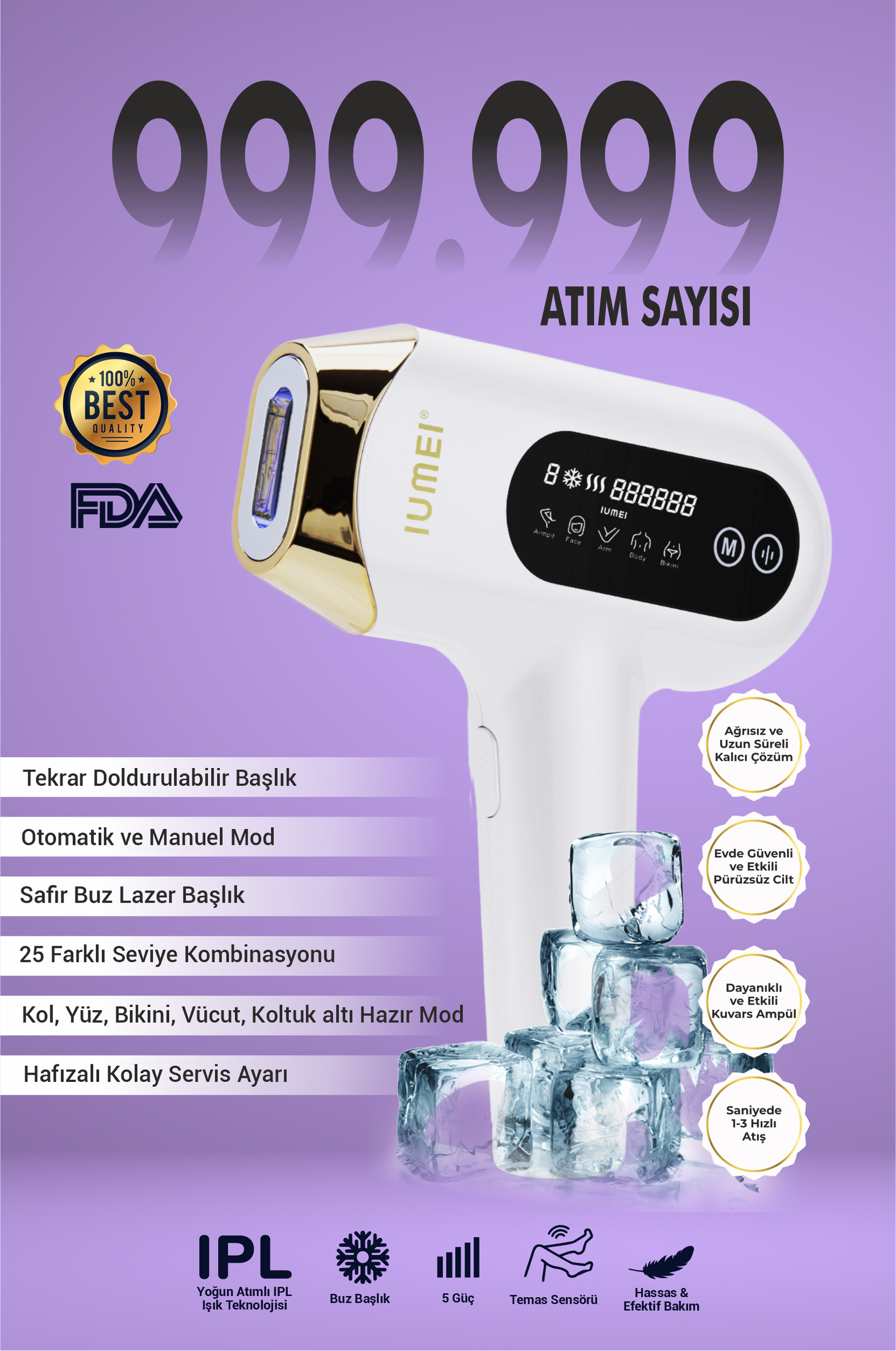IUMEI IPL Safir Buz Lazer Epilasyon 1 milyon Atım Otomatik/manuel, Hızlı Ağrısız Tüm Vücut, Cilt Sensörlü
