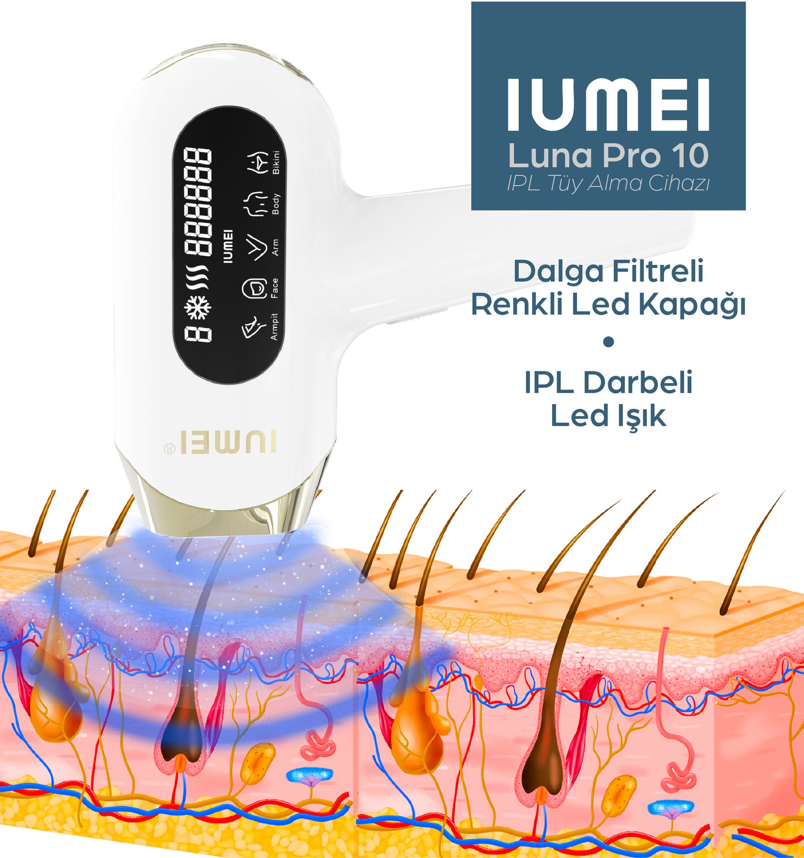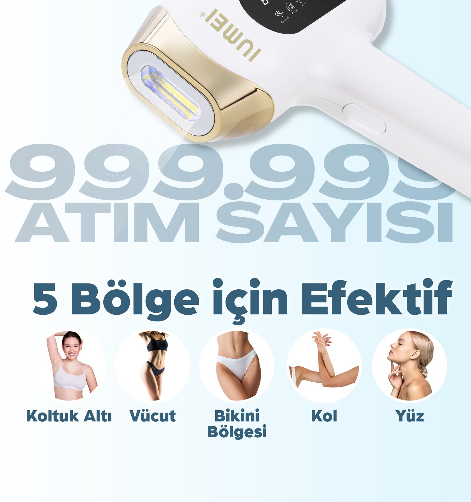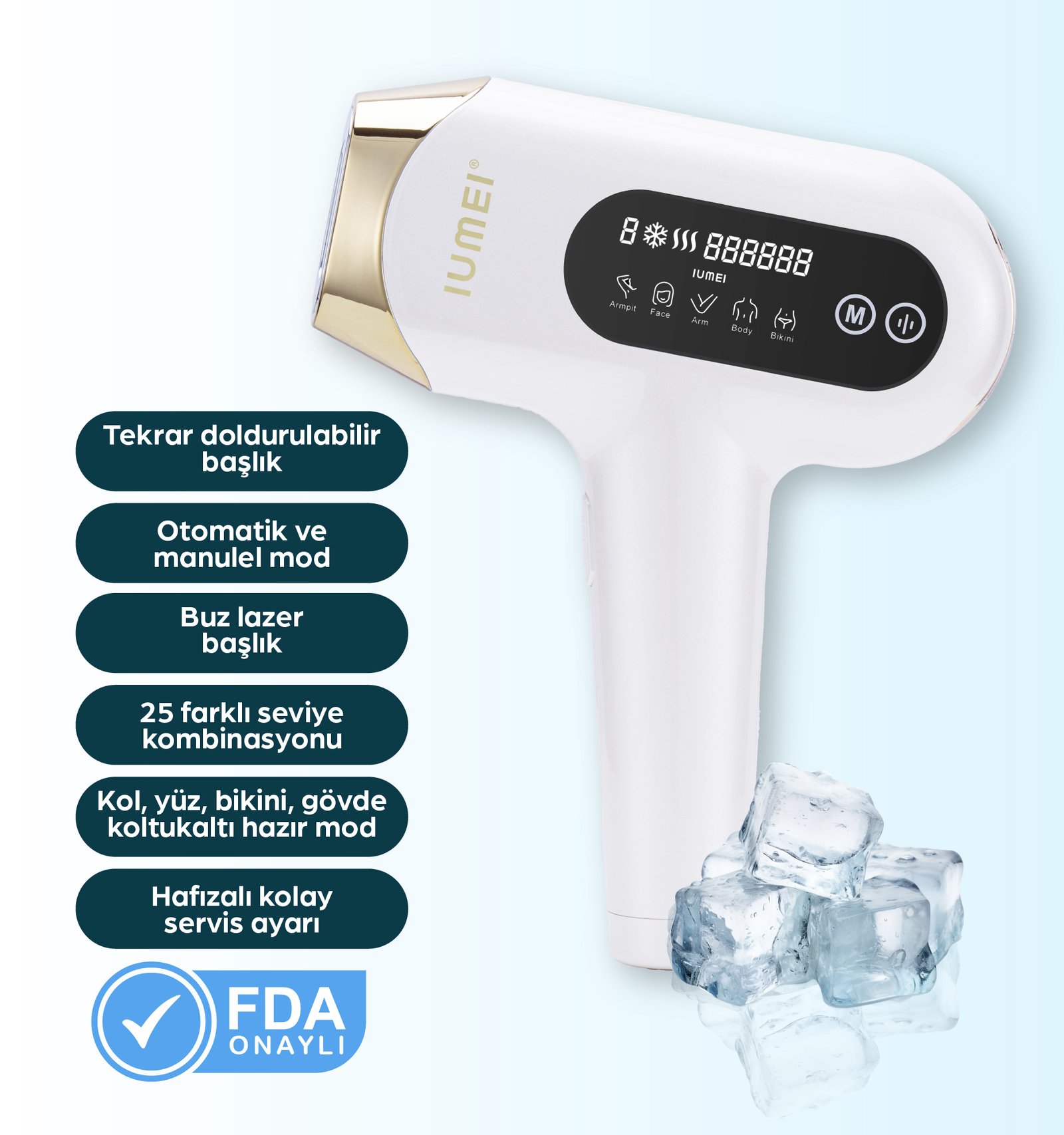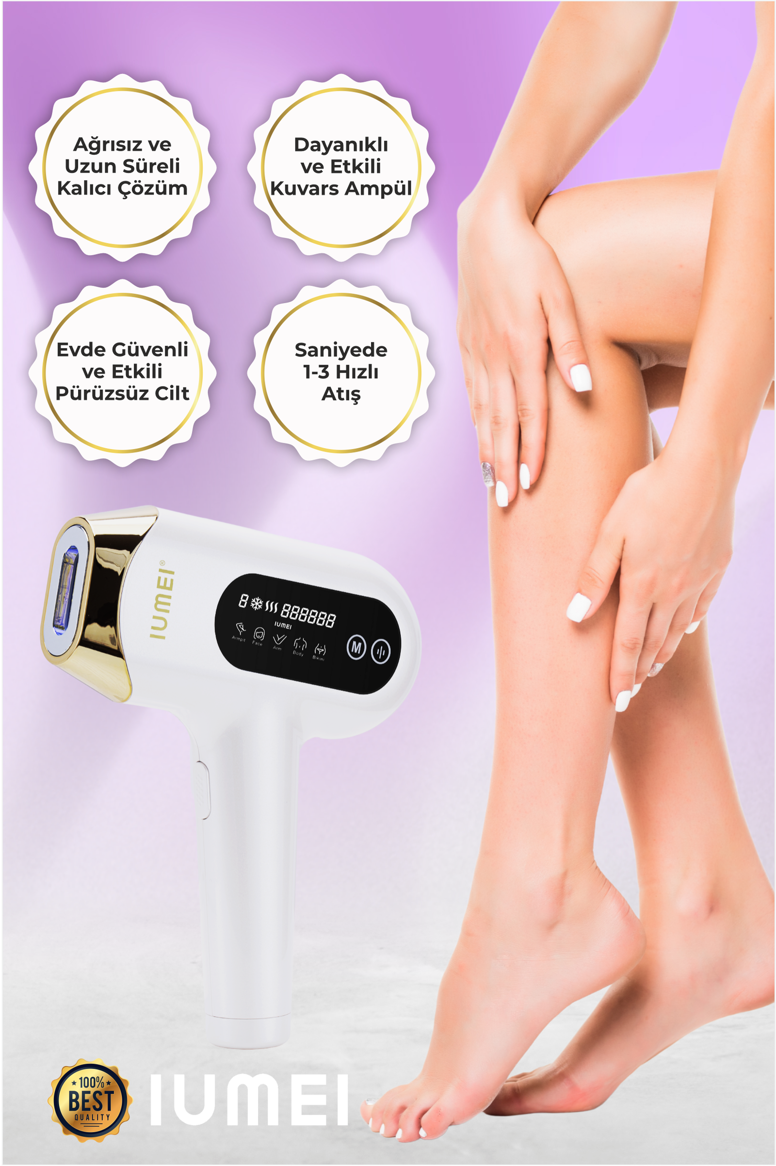 IUMEI IPL Safir Buz Lazer Epilasyon 1 milyon Atım Otomatik/manuel, Hızlı Ağrısız Tüm Vücut, Cilt Sensörlü
