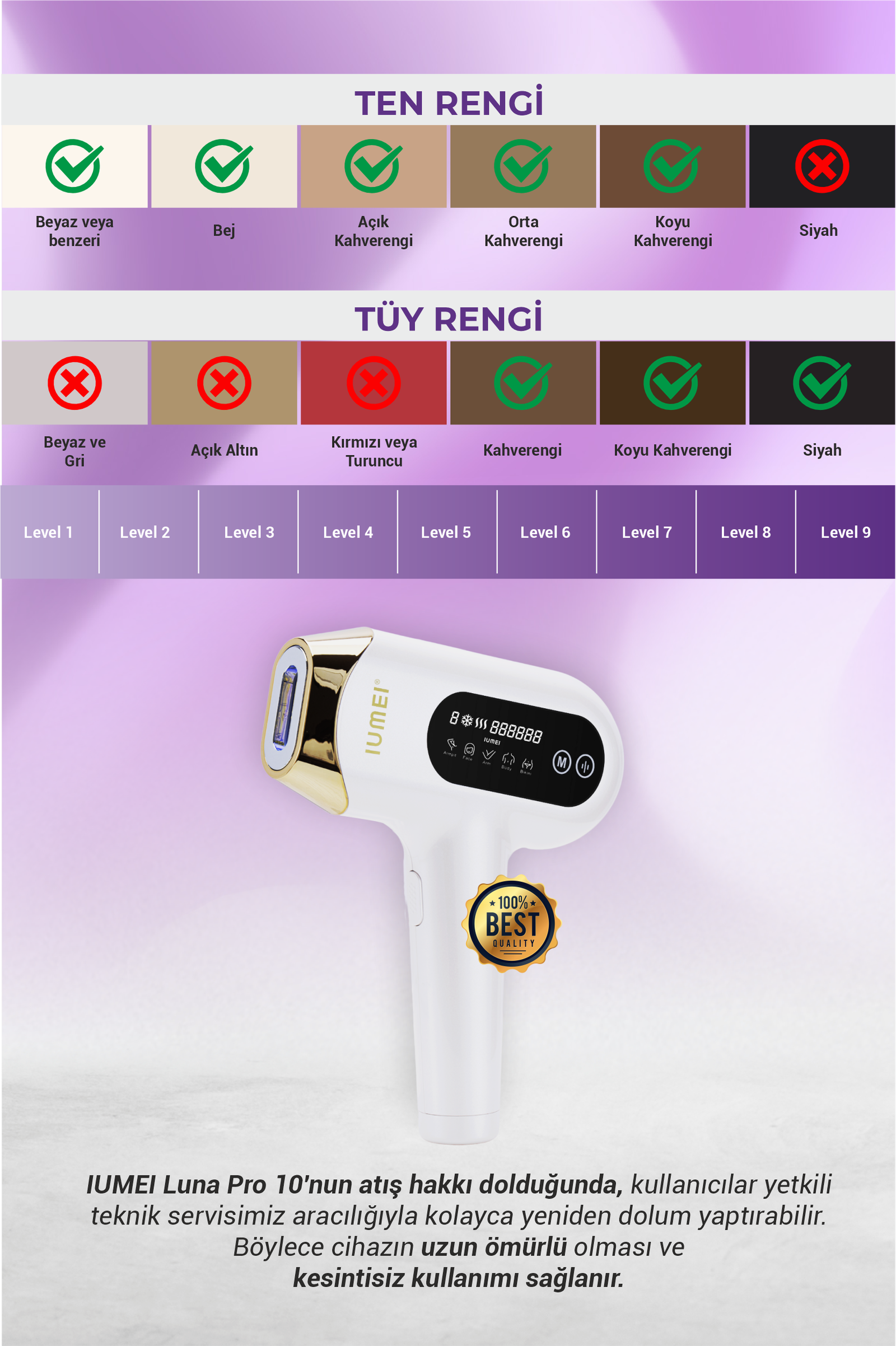 IUMEI Güzellik Araçları San. ve Tic. A.Ş. kayıp ya da hasar görmüş paket ve ürünlerden sorumlu tutulamaz.