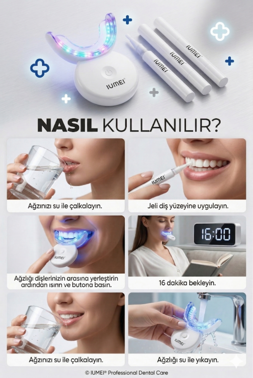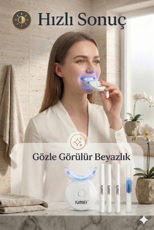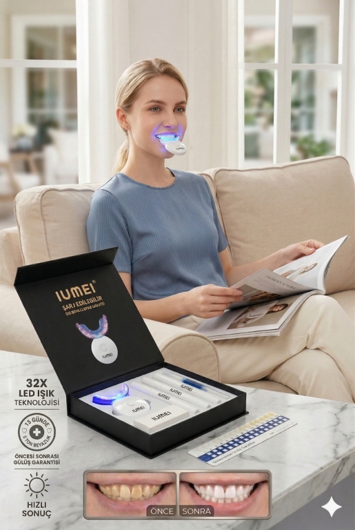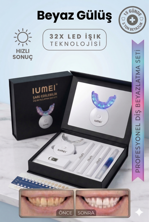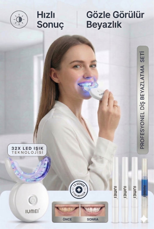 IUMEI Profesyonel 32 LED Diş Beyazlatma Seti Evde Hızlı Etkili Güvenli 4 Kalem Dahil – Beyaz