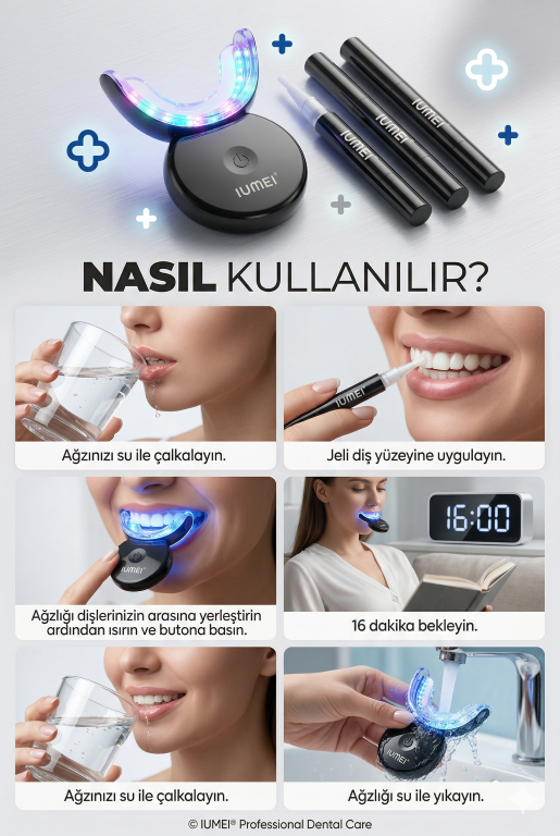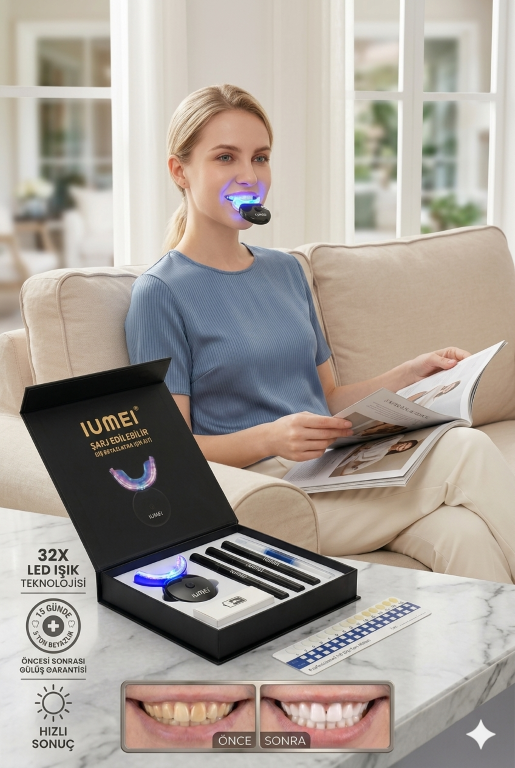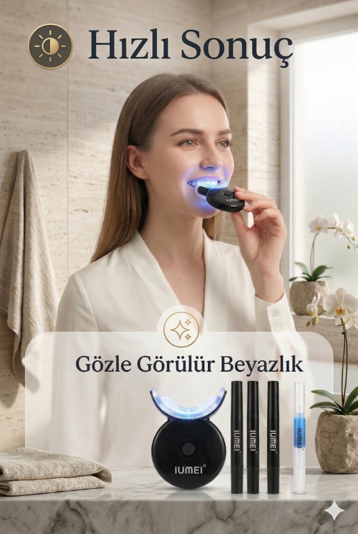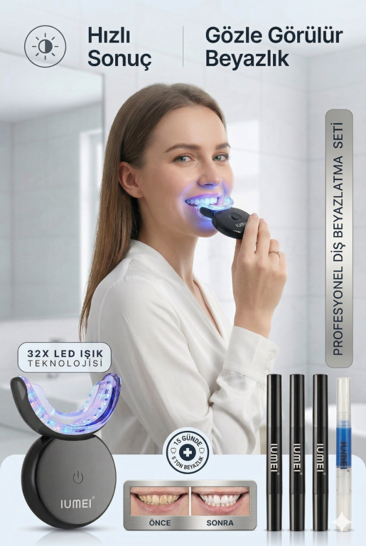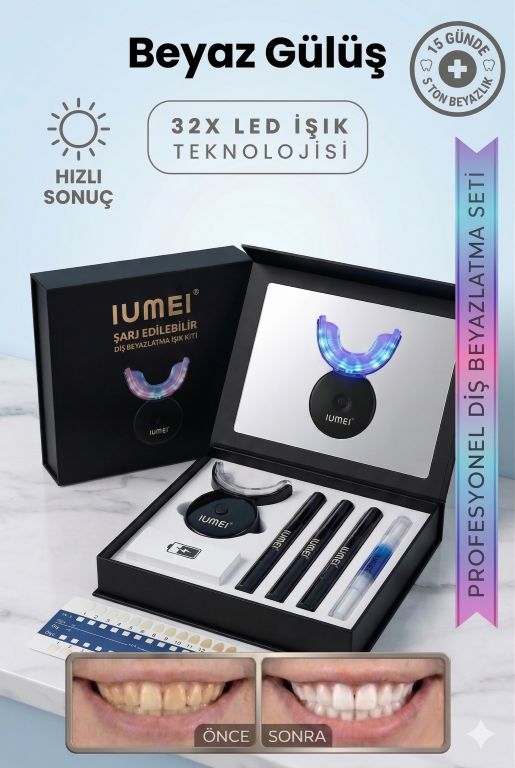 IUMEI Profesyonel 32 LED Diş Beyazlatma Seti Evde Hızlı Etkili Güvenli 4 Kalem Dahil – Siyah